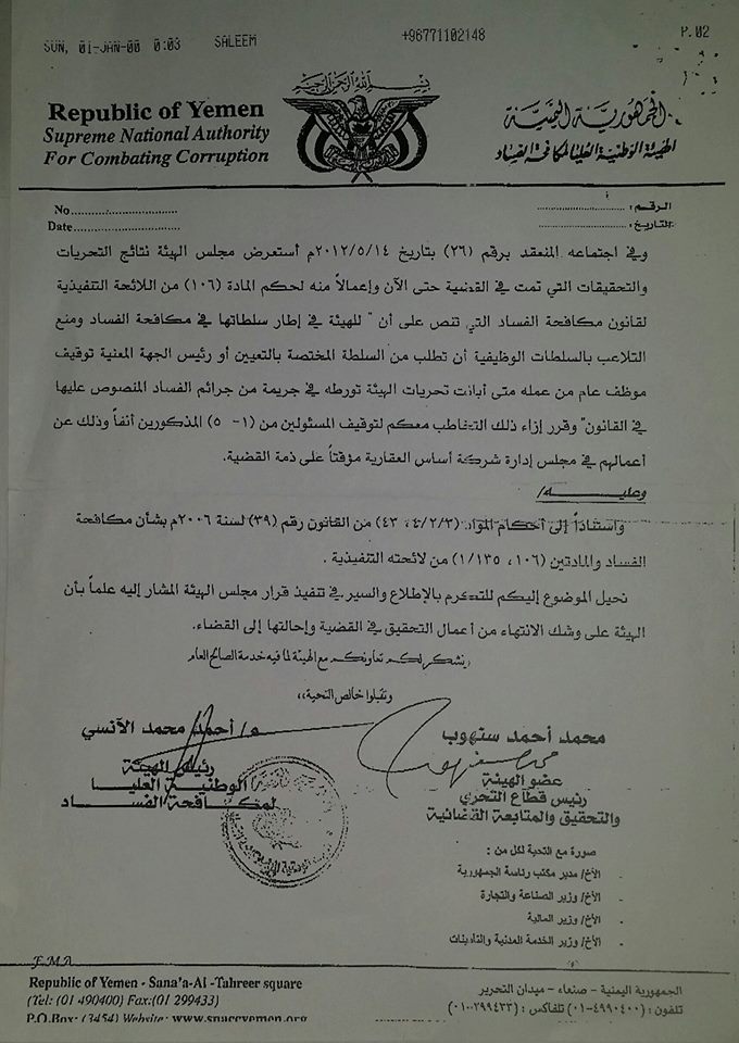 كان الفساد المراد تغطيته هو مشروع بناء فندق القصر في عدن والذي انشئ لاستضافة وفود خليجي 20، والذي فشلت الشركة السابقة في إنجازه خلال المدة المحددة وبالشكل المطلوب، مارست على اثر ذلك شلة الشعور جملة من التدابير والخطوات المرصعة بالفساد (والمبينة ادناه في جزء من تقرير الجهاز المركزي للرقابة والمحاسبة عن فساد الشعور رئيس هيئة التأمينات والمعاشات ) كان من ضمنها إنشاء شركة اساس العقارية والتي باشرت اعمالها الترقيعية ورفع التكلفة وزيادة الكميات وتقليص المواصفات والتلاعب بالأرقام بشكل مخيف ومفضوح، في حين لم يكن الجهاز المركزي للرقابة والمحاسبة في غفلة من ذلك وقام بدوره المناط به من خلال نزول اللجان ورفع التقارير والمذكرات، وبعد استكمال الملف تم إحالته الى الهيئة العليا لمكافحة الفساد والذي بدورها وجهت بإيقاف المتورطين في هذا الفساد، غير ان لوبي الفساد المنظم قام بإيقاف الملف وتجميد القضية تماماً والى يومنا هذا وذلك عبر اياديه الخفية المنتشرة والمتغلغلة في كافة مفاصل الدولة .