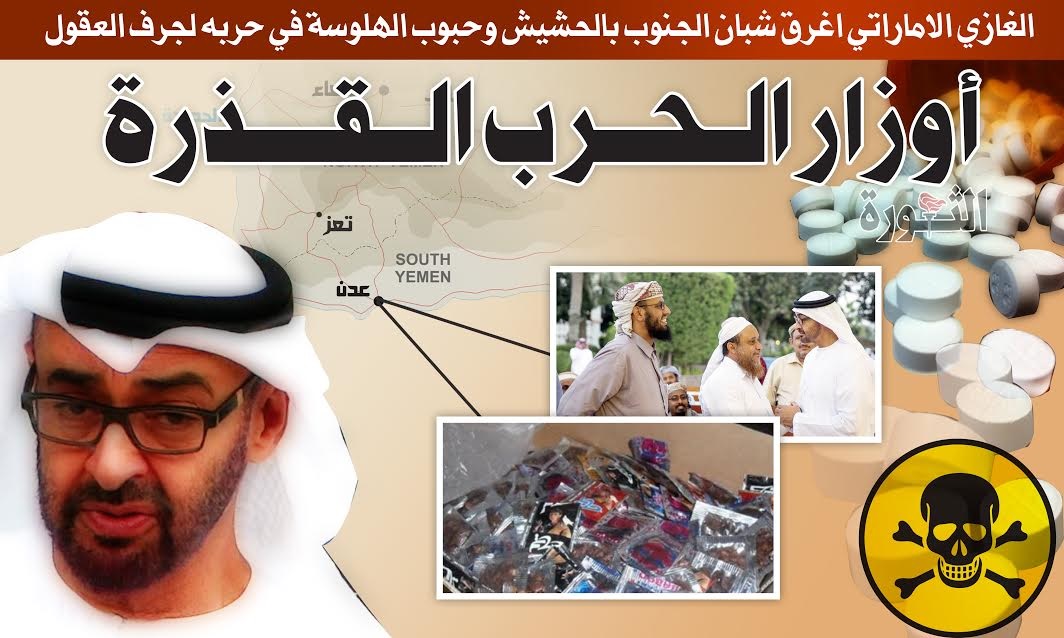 في موازاة حرب عدوانية خارجية وداخلية استخدم فيها العدو السعودي الإماراتي احدث أنواع أسلحة الحرب الفتاكة والناعمة، وحرب اقتصادية وأخرى بيولوجية من الجو لم تخل حرب تحالف العدوان السعودي الإماراتي من أشكال قذرة للحرب يتصدر اليوم في محافظة عدن مشهد انتشار الحشيش المصنع والحبوب المخدرة ” المدعوم” والتي اجتاحت الأحياء والمدارس والكليات بلا هوادة مطيحة بأعداد هائلة من الشباب الذين استهدفهم العدوان في حرب تدمير العقول وجرف الطاقات الشبابية فيما تنهمك القوى السياسية المحلية بدوامة صراع النفوذ والاستقطاب وترديد بطولات الانتصارات الزائفة.