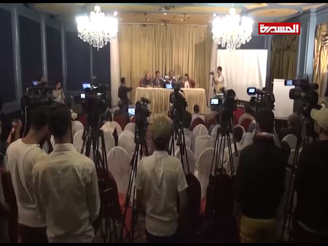 عبده الجندي في مؤتمر صحفي يتحدث عن حقيقة سيطرة ” المقاومة ” بتعز على القصر الجمهوري