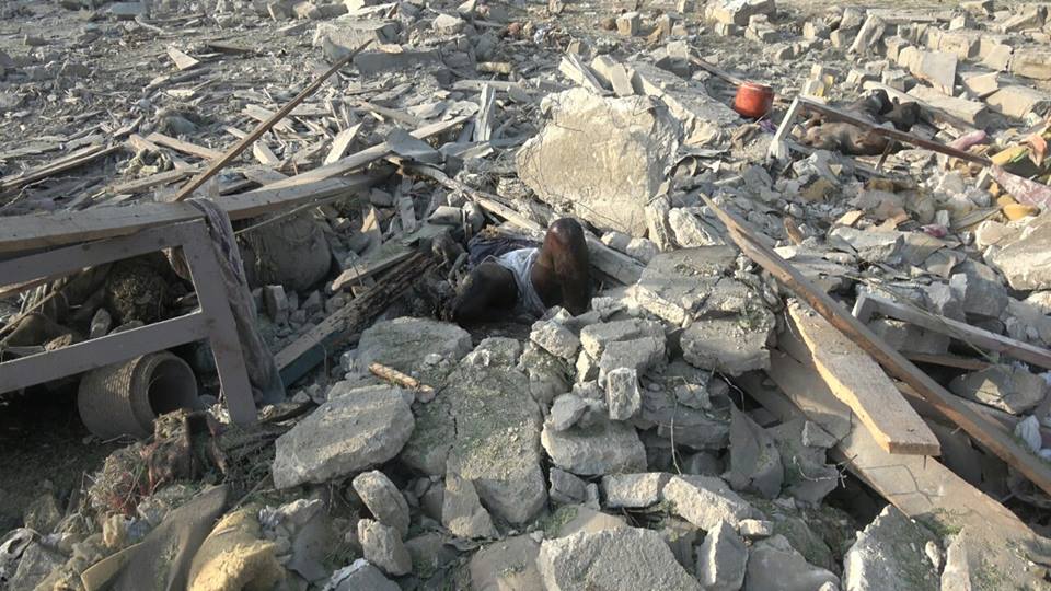 أشلاء بين الركام.. مشاهد أليمة من #مجزرة_سوق_المشنق في مديرية شدا الحدودية بصعدة (صور + أسماء)