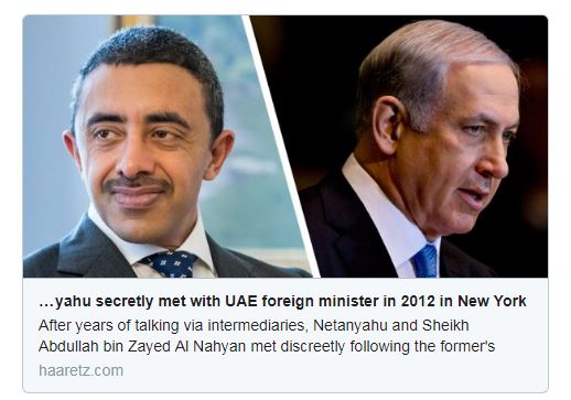 كشفت صحيفة صهيونية عن حدوث لقاء سري بين وزير الخارجية الإماراتي عبد الله بن زايد ورئيس حكومة كيان العدو الصهيوني بنيامين نتنياهو بـنيويورك في سبتمبر 2012.