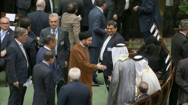 وتقول إن حضور عدد كبير من المسؤولين في مختلف أنحاء العالم منهم ممثلون عن كوريا الشمالية والصين والهند وعدة دول أوروبية على رأسها بريطانيا بالإضافة إلى فيدريكا موغريني، مسؤولة العلاقات الخارجية في الاتحاد الأوروبي، يوضح أن جهود واشنطن لعزل إيران لم تُفلح.