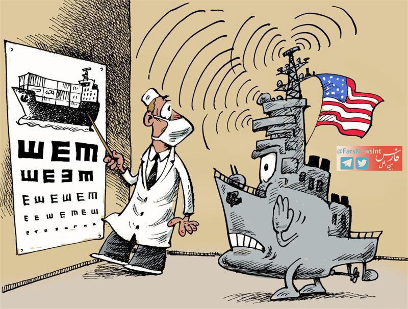 وتظهر الصورة كيف ان المدمرة الامريكية التي من المفترض ان تكون مزودة باكثر المعدات تطوراً لا تفقه الجهات لا بل انها كانت في عيادة طبيب عيون يفحص نظهرها وادراكها للجهات.