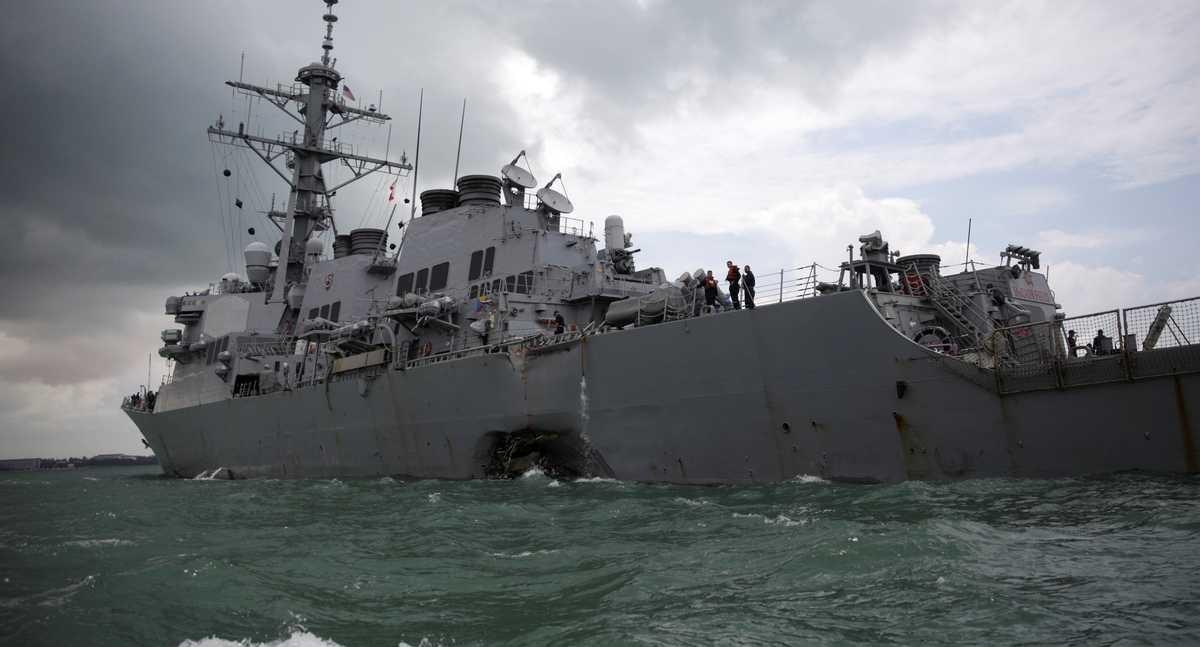 وقالت البحرية  فى بيان إن المدمرة جون إس مكين المزودة بصواريخ موجهة تصادمت مع السفينة التجارية ألنيك إم سى شرقى أثناء “إبحار السفينة لزيارة روتينية للميناء فى سنغافورة . “التقارير المبدئية تشير إلى أن أضرارا بالغة لحقت بالجانب الأيسر الخلفى من جون إس.مكين ” .