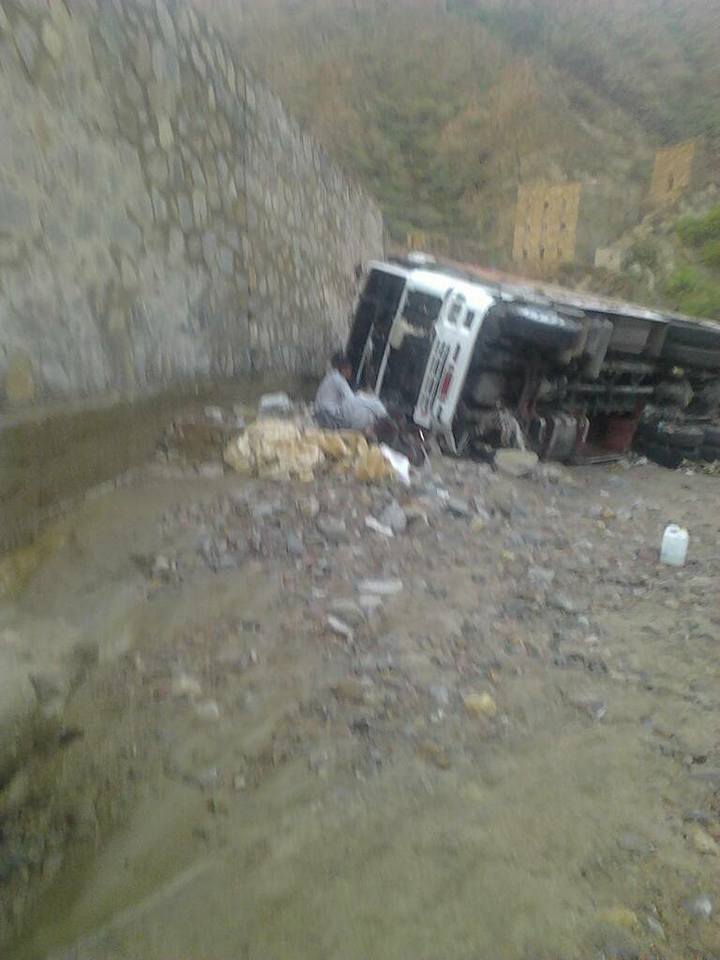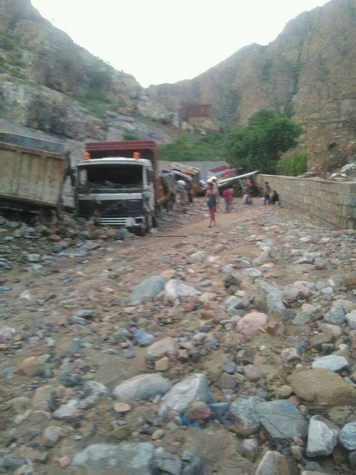 وقال شهود عيان إن الأمطار الغزيرة التي شهدتها المنطقة مساء أمس الاثنين أدت إلى نزول سيول جارفة أسفل عقبة هيجة العبد، مما أدى إلى جرف عدد من السيارات والشاحنات.