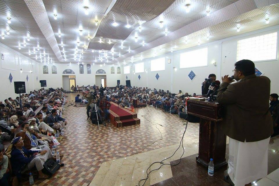 كما تحدث عن الثورة انها لأبناء الشمال و الجنوب و أتت للقضاء على الهيمنة و الجبروت و رفض أي حكم فردي او الاستبداد فثورة 21 سبتمبر ثورة الاحرار و الشرفاء.