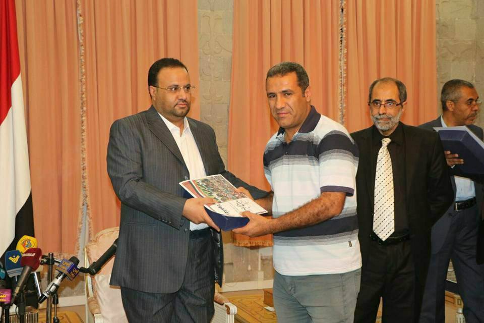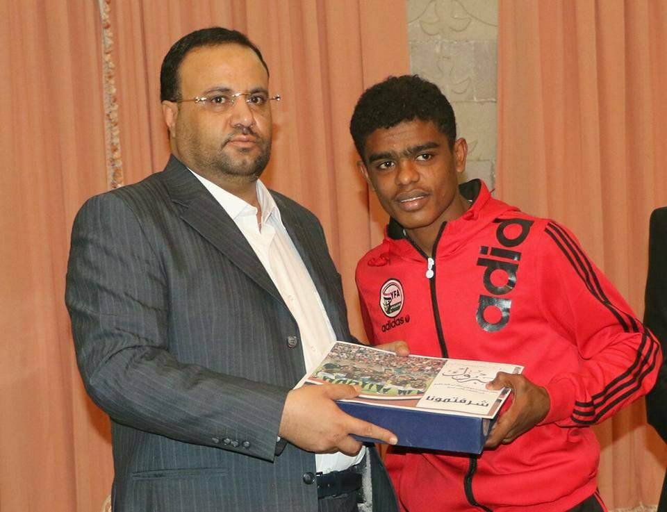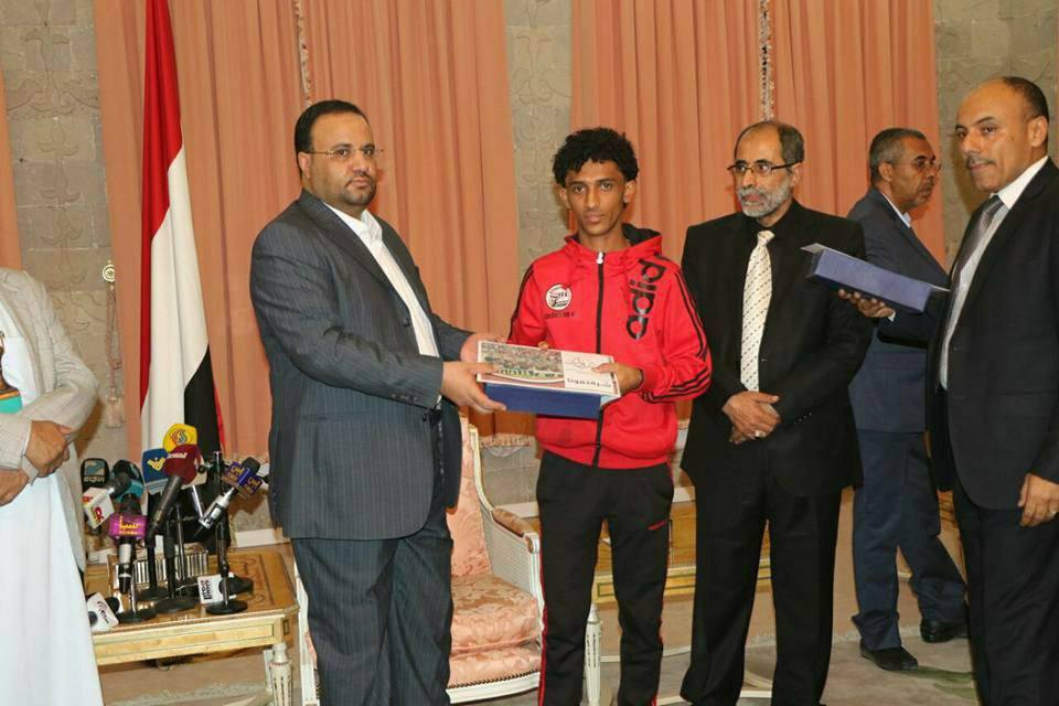 وكرم رئيس المجلس السياسي الأعلى ومعه عضو المجلس سلطان السامعي ووزير الشباب والرياضة وأمين المجلس المحلي بأمانة العاصمة، بعثة المنتخب بالدروع والجوائز العينية والشهادات التقديرية لما حققوه من إنجاز في هذه الظرف الذي تمر بها اليمن.