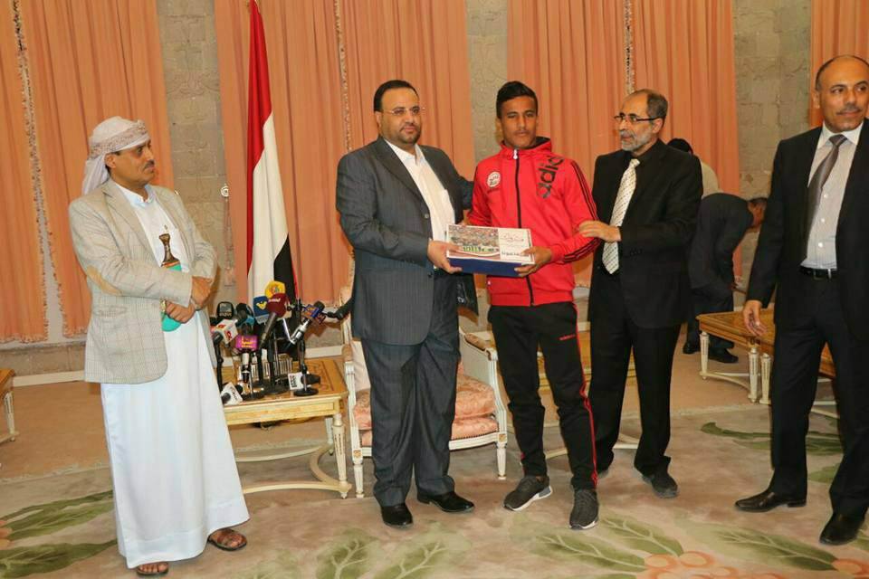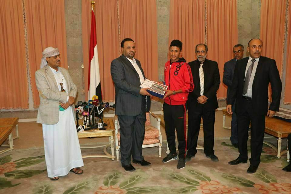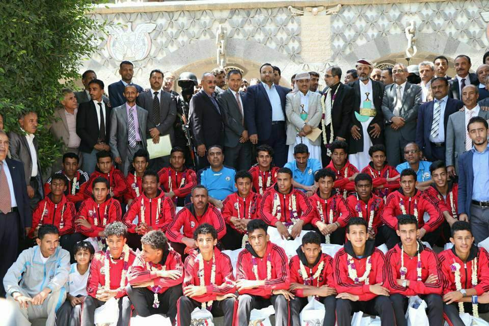 استقبل رئيس المجلس السياسي الأعلى صالح الصماد ، اليوم السبت ، في القصر الجمهوري بصنعاء بحضور عضو المجلس السياسي الأعلى سلطان السامعي، بعثة المنتخب الوطني للناشئين لكرة القدم الذي تأهل إلى نهائيات كأس أمم أسيا للناشئين في إنجاز كبير للكرة اليمنية.