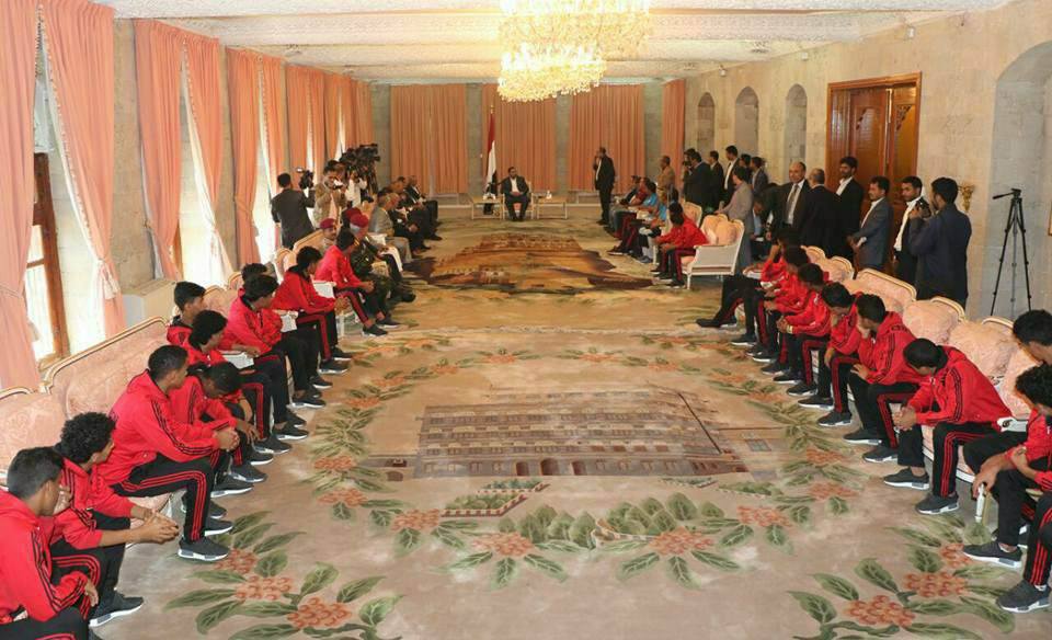 بالصور.. شاهد استقبال الرئيس الصماد للمنتخب الوطني للناشئين في القصر الجمهوري