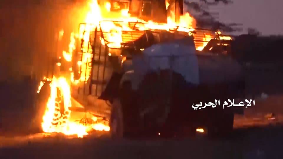 وتُظهر صور من المشاهد للحظات تصدّي قوات الجيش واللجان لزحف المرتزقة والذي أسفر عن سقوط عدد من القتلى والجرحى في صفوف الأخيرين وإحراق مدرعة خلفوها بعد فرارهم.