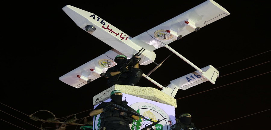 اما السلسلة الثانية من التهديدات نتجت عن استخدام قوى محور المقاومة للطائرات بدون طيار المجنحة والتي تعتبر الاكبر اتاحة في ترسانة حماس وحزب الله، حيث ان حماس لديها خطط لإنتاج هذه الطائرات بدون طيار في غزة، وبالرغم من انها بسيطة في تصنيعها، إلا أن حماس تقوم باختبارها.