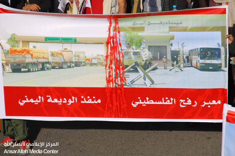 وخلال المسيرة أكد رئيس اللجنة الثورية العليا محمد علي الحوثي وقوف أبناء اليمن إلى جانب الشعب الفلسطيني إزاء ما يتعرض له من عدوان وإنتهاكات من قبل الكيان الصهيوني .