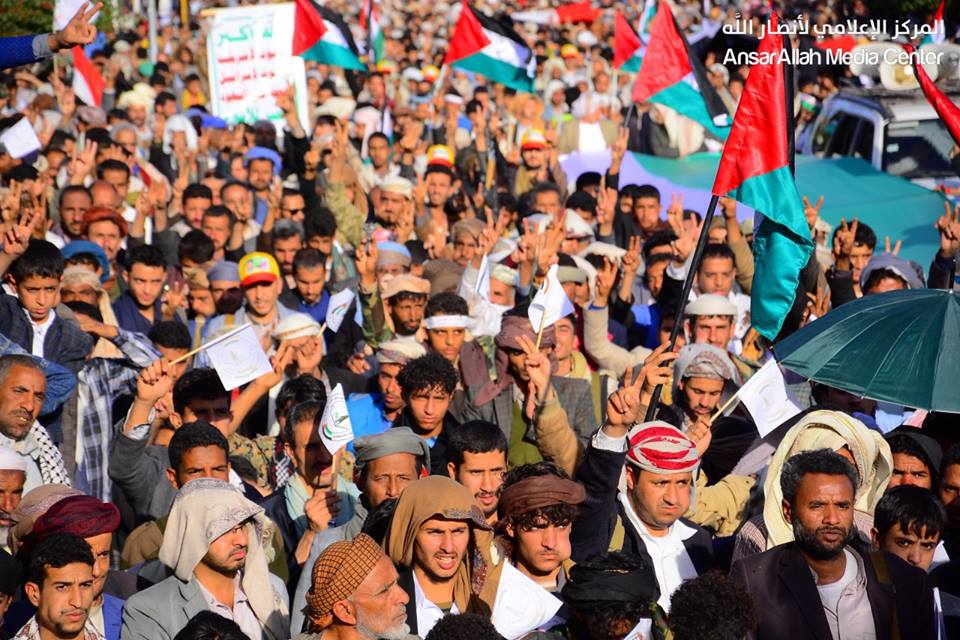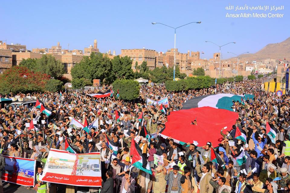 وخلال المسيرة أكد رئيس اللجنة الثورية العليا محمد علي الحوثي وقوف أبناء اليمن إلى جانب الشعب الفلسطيني إزاء ما يتعرض له من عدوان وإنتهاكات من قبل الكيان الصهيوني .