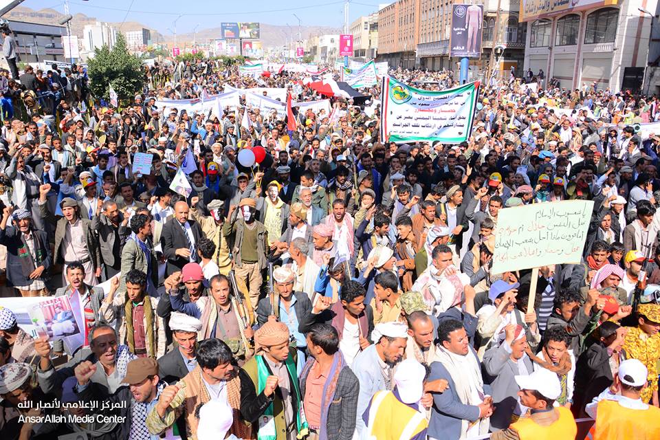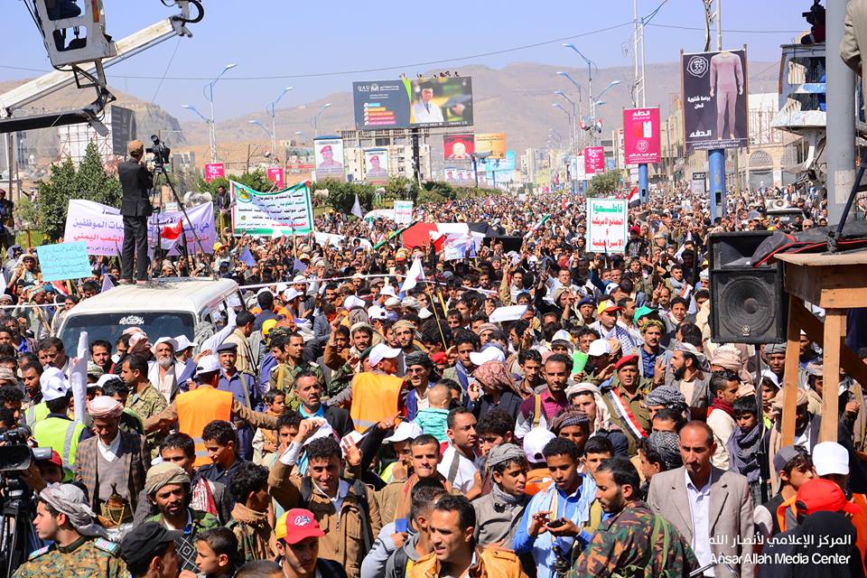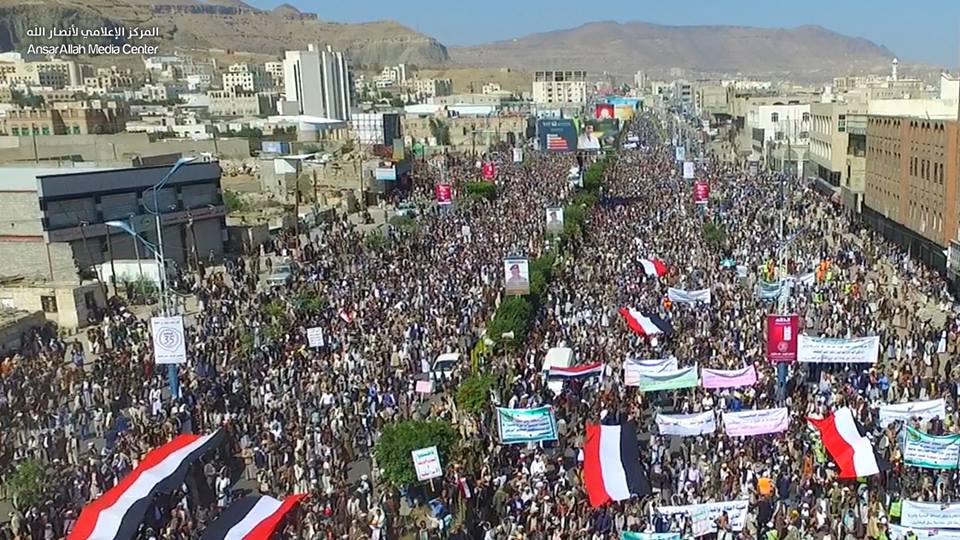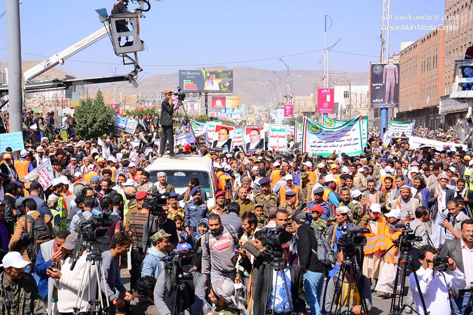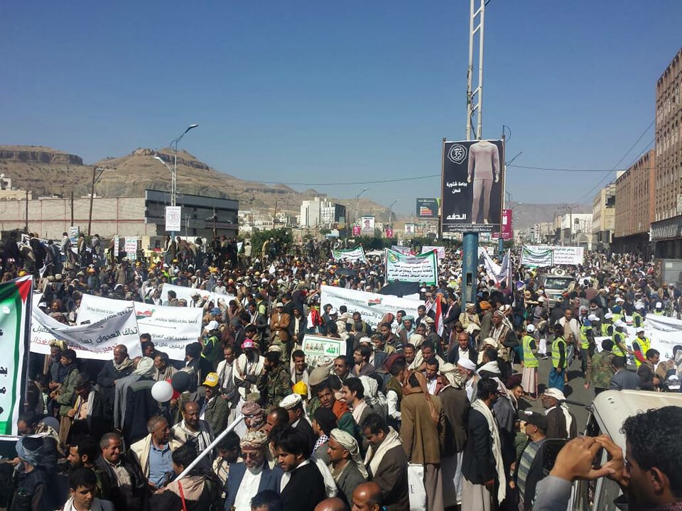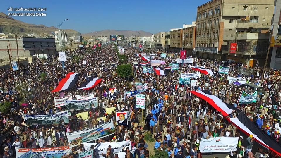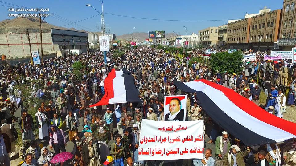 جاء ذلك خلال كلمة للرئيس الصماد ألقاها أمام المسيرة المليونية التي انطلقت في شارع الستين أمام مكتب الأمم المتحدة بالعاصمة صنعاء رفضا لتصعيد العدوان وحصاره على الشعب اليمني.