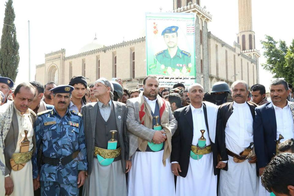 جاء ذلك خلال تشييع الشهيد النقيب إسماعيل عبد الجبار الشامي أحد أفراد حمايته في جامع الشهداء بأمانة العاصمة، والذي إرتقى شهيدا في جبهة العزة والكرامة في جبهة نهم أمس الخميس.