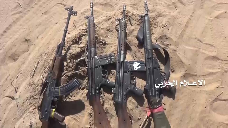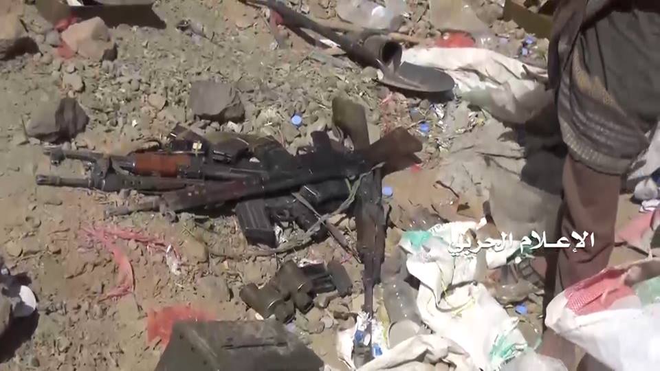 وفي المشاهد أيضاً توضح عدد من الأسلحة والذخائر وقعت كغنائم بيد الجيش واللجان بعد أن تركها المرتزقة في المواقع التي تم دحرهم منها.