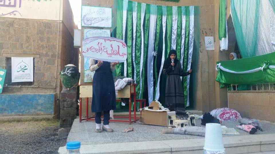 وقدمت طالبات المدارس عروض مسرحية حاكت زمن البعثة النبوية الشريفة وما رافقها من الظلم والتعذيب الذي لاقاه النبي محمد وبعض من أمن به.