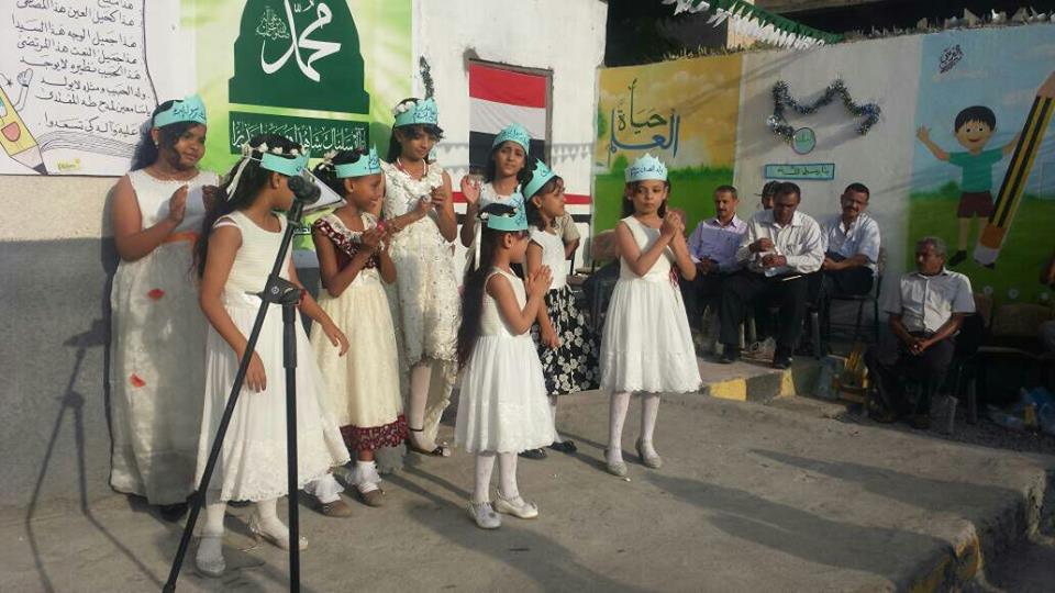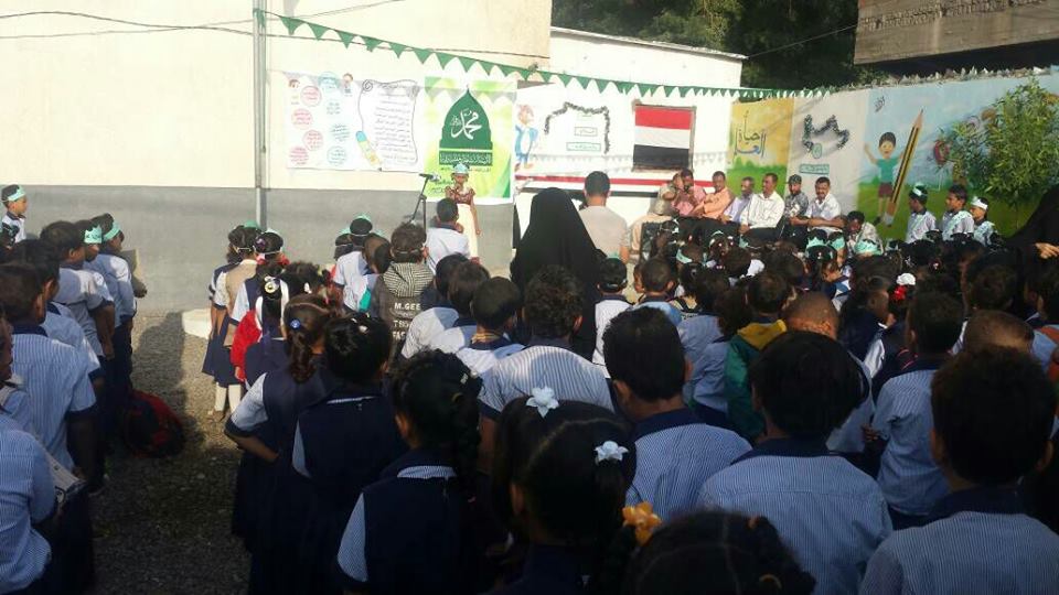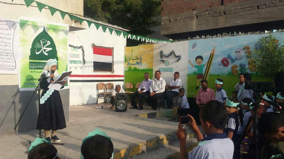 وفي الحفل الذي حضرة مدير التربية بالمديرية حسن وهبان ونائبه اسماعيل قاسم ، القى مدير المديرية عبدالمنعم عبدالفتاح الرفاعي كلمة عبر فيها عن الاعجاب “لما قدم من قبل زهرات وبراعم المدرسة من اهازيج واناشيد عبرت عن اعتزازهم وفرحتهم بهذه الذكرى الغالية على قلوبنا والتي تأتي في ظل عدوان همجي قتل الاطفال والنساء وهدم المدارس وتأثرت منه  البنية  للبلاد ولاسيما المنشآت التعليمية كالمدارس وغيرها” ،  وأضاف “نحن بهذا الاحتفال نؤكد على صمودنا وانتصارنا على العدوان الغاشم ولن يثنينا هذا العدوان السافر والظالم من مواصلة الحياة الطبيعية”.