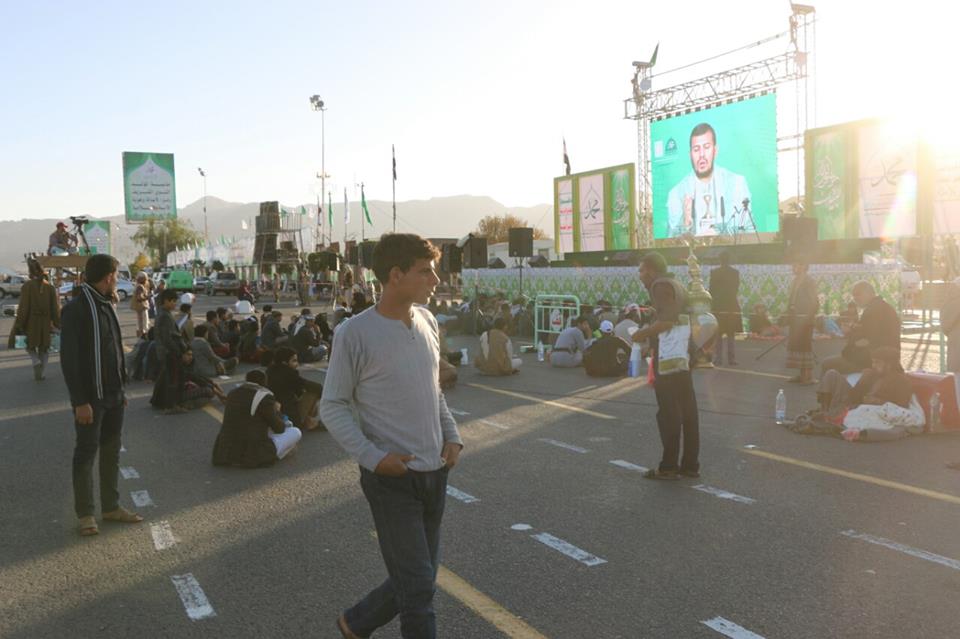 والتُقطت الصور خلال إلقاء السيد عبدالملك بدرالدين الحوثي للمحاضرة الخامسة بمناسبة المولد النبوي الشريف ، والتي لا زالت مُستمرة حتى الآن: