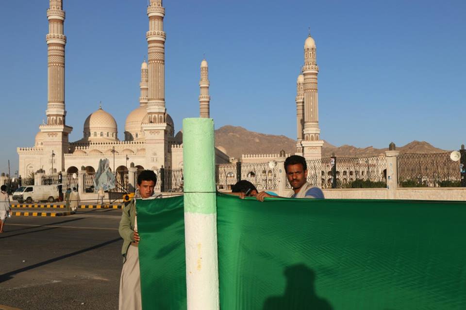 صور من الاستعدادات الاخيرة في ساحة ميدان السبعين لاستقبال ضيوف الرسول الأعظم الوافدين من مختلف المحافظات والمديريات.