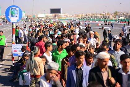 تتوافَدُ، منذ الصباح الباكر، الحشودُ الكبيرةُ القادمة إلى ساحة السبعين بالعاصمة صنعاء للمشاركة في فعالية المولد النبوي الشريف.
