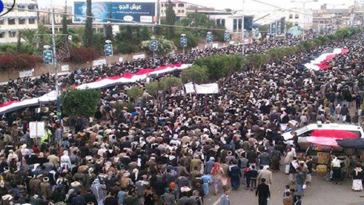 وتم اختتام المسيرة بكلمة لرئيس الثورية العليا محمد علي الحوثي أكد فيها أن اليمن انتصر لقضيته وللجميع ولم ينتصر لحزب أو مذهب، مضيفا بالقول: “اليوم نحن في نواقع جديد ويمن جديد، يمن يتغلب فيه الشعب اليمني على كل المؤامرات، ونحن مع أخوة الجميع”.