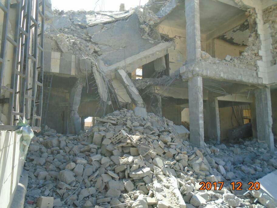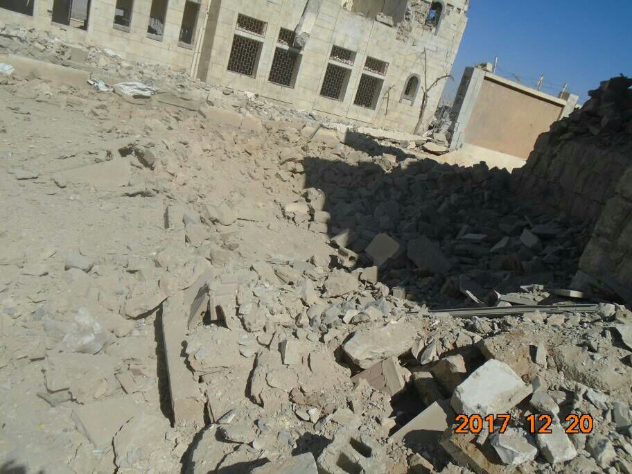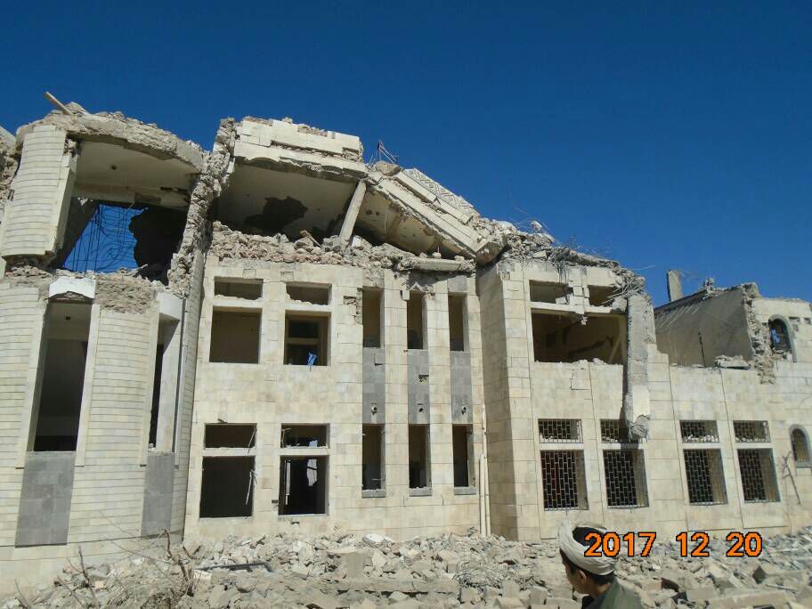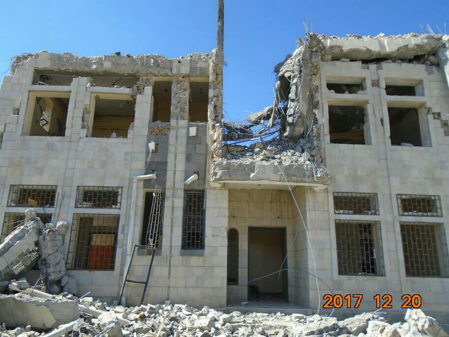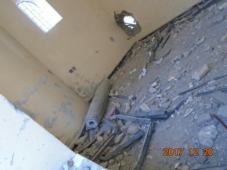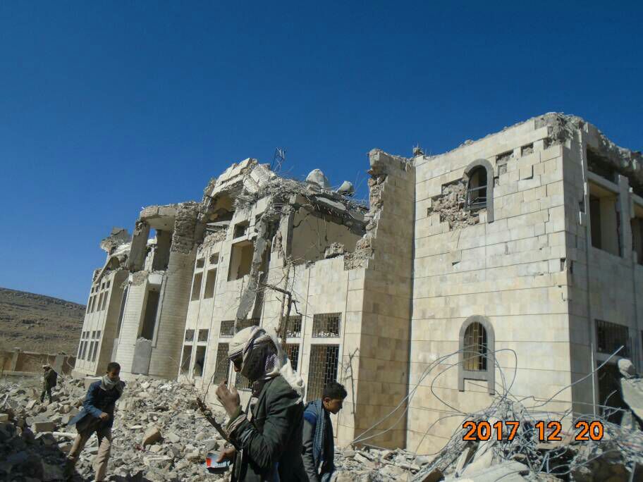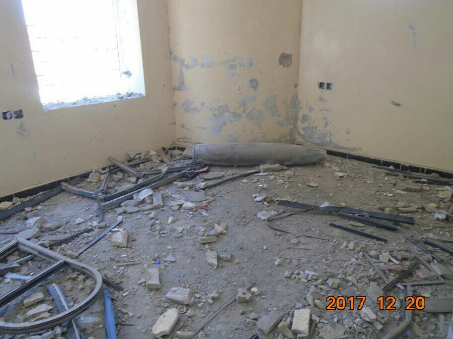 وأوضح مصدر محلي بالمحافظة أن طيران العدوان السعودي الامريكي شن خمس غارات على مديرية حوث استهدفت المجمع الحكومي الواقع بحوث والذي سبق استهدافه بعدة غارات من سابق وادى ذلك الى اتلاف المبني نهائيا وعند معاينة المبني وجد صاروخ بداخل المجمع لم ينفجر.