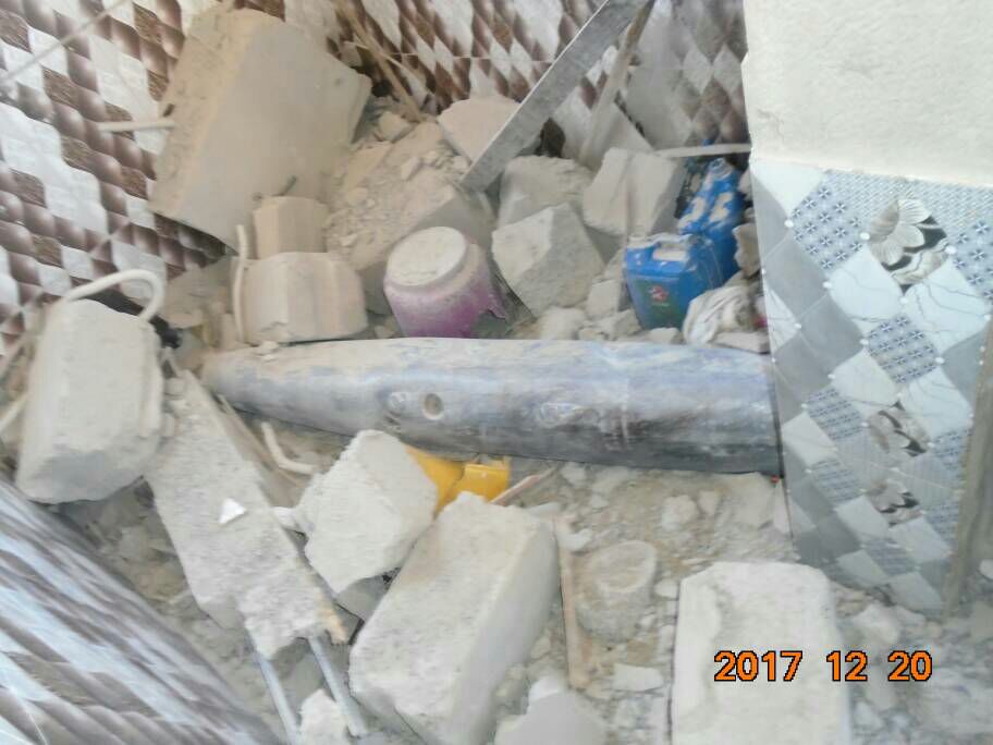 /بكر عبدالرحمن اليشيعي مع اولاده حيث والمنزل يقع بجوار المجمع من جهة شرق واستقر بالمنزل ولم ينفجر مما ادى الى تضرر المنزل جزئيا  ولم تحصل اضرار بشرية.
