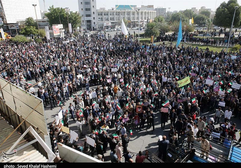 وفي بوشهر أيضا قال مراسل وكالة تسنيم الدولية للأنباء أن آلاف المواطنين نزلوا الى الشوارع استنكارا لأعمال العنف التي قام بها بعض المأجورين وأعربوا عن دعمهم لقائد الثورة الإسلامية وقيم لثورة الإسلامية.