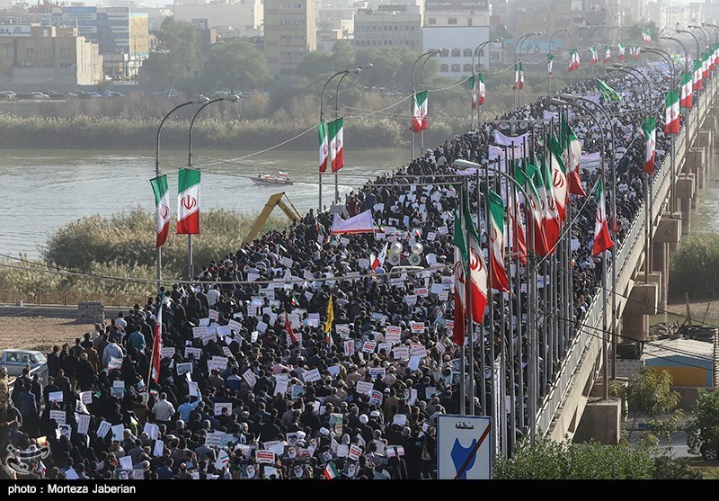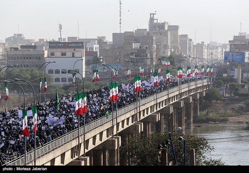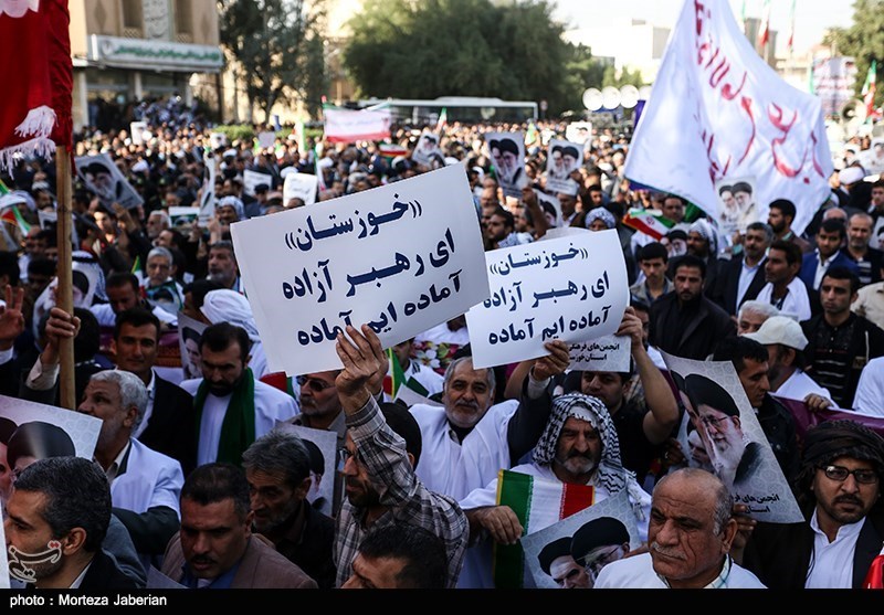 وفي الأهواز نزل أهالي المدينة الأغيار الى الشوارع منددين بالتعرض للمقدسات ورموز إيران الإسلامية المقدسة وأعربوا عن تمسكهم بالوحدة في مواجهة المخربين المدعومين أجنبيًّا. المتظاهرون رفعوا الشعارات الثورية وأكّدوا في الوقت نفسه على ضرورة اتخاذ الحكومة الإجراءات الاقتصادية المناسبة لتخفيف المعاناة عن الشعب.