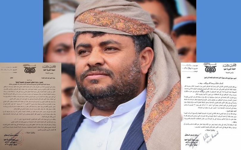 نشر رئيس اللجنة الثورية العليا محمد علي الحوثي على حسابه بـ”تويتر” صور لرسالتين بعث إحداهما لأمين عام الأمم المتحدة والأخرى لنائب المبعوث الأممي.