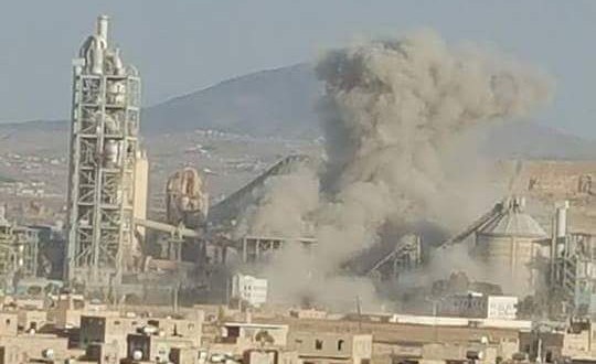 الصورة من الأرشيف: استهداف طيران العدوان لمصنع أسمنت عمران