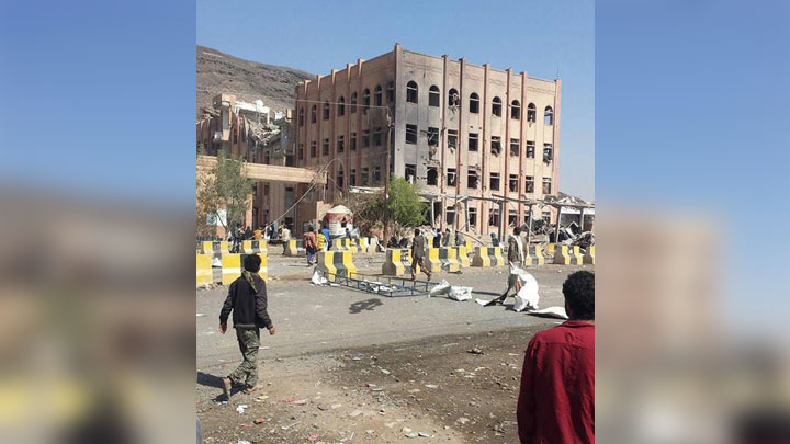 65 شهيداً وجريحاً في استهداف طيران العدوان لمبنى الأدلة الجنائية بالعاصمة صنعاء (صورة)