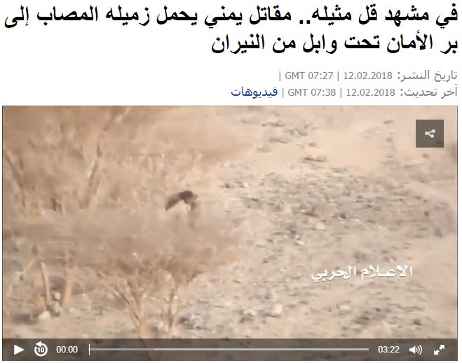 نشر موقع روسيا اليوم مقطع الفيديو للمقاتل اليمني الذي أنقذ رفيقه وسط وابل الرصاص المنهمر واصفاً المقطع بالمشهد الذي قل مثيله في العالم.