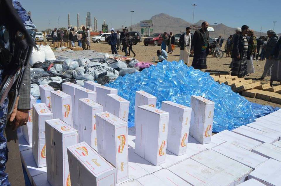 آل الشامي يقدمون قافلة غذائية وعينية للجيش واللجان الشعبية
