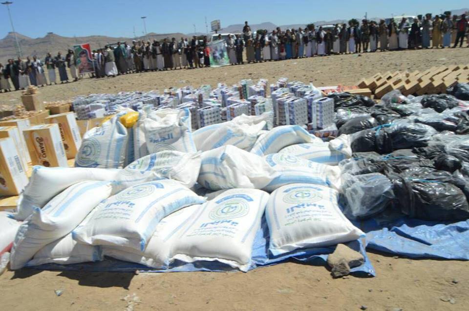 آل الشامي يقدمون قافلة غذائية وعينية للجيش واللجان الشعبية