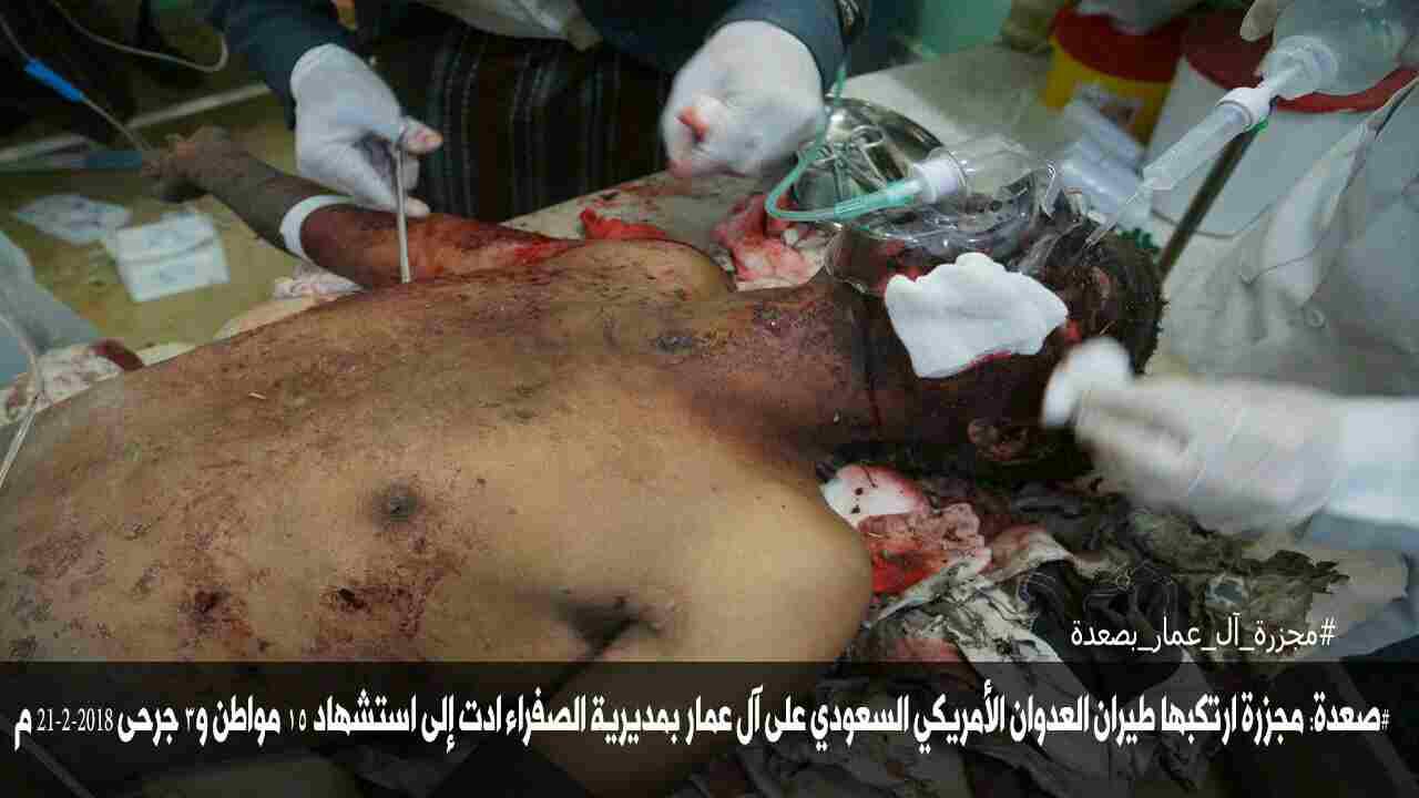ارتكب تحالف العدوان السعودي الأمريكي ، اليوم الأربعاء ، مجزرة مروّعة بحق عدد من المواطنين في محافظة صعدة.