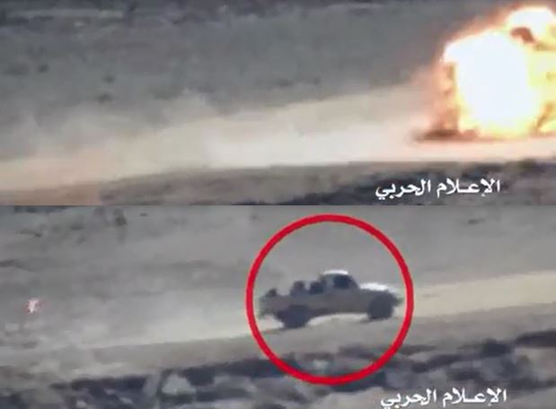 *الصورة من الأرشيف: صاروخ موجه يستهدف آلية محملة بالمرتزقة في صرواح مأرب