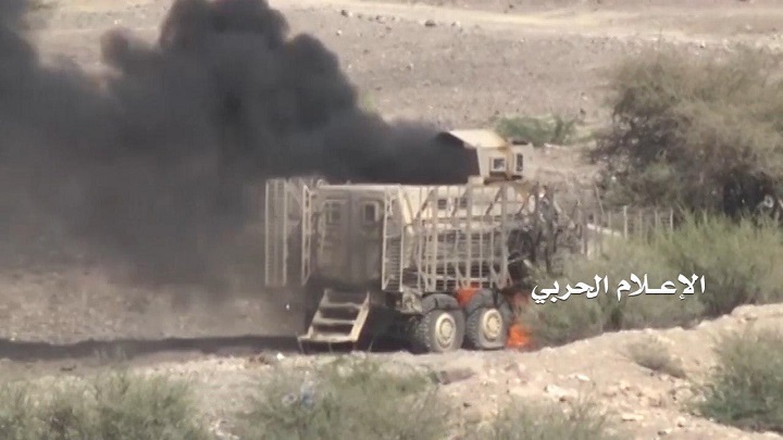 وأفاد مصدرٌ عسكري بأن وحدة الهندسة التابعة للجيش واللجان الشعبية تمكّنت من تدمير آليتين عسكريتين محملتين بالمرتزقة بعبوتين ناسفتين خلف معسكر الإمام بمديرية ذباب.