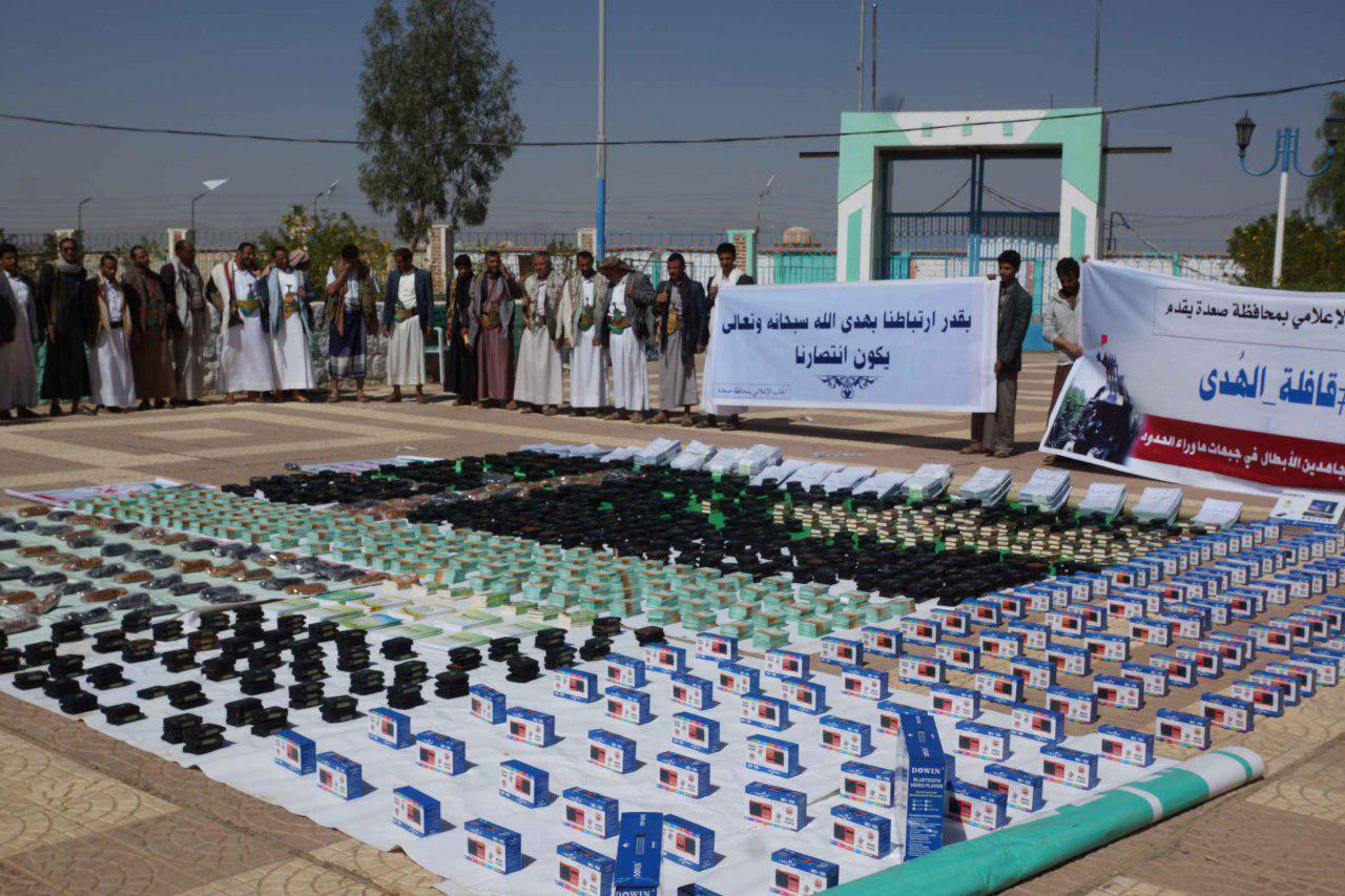 قدم الجانب الإعلامي بمحافظة صعدة، اليوم الثلاثاء ، قافلة الهدى إسناداً للمرابطين في جبهات ما وراء الحدود من الجيش واللجان الشعبية وتزامنا مع حلول العام الرابع للعدوان السعودي الأمريكي .