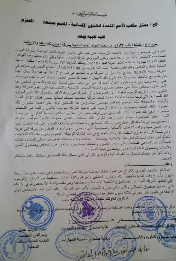اعلن اتحاد نقابات عمال وموظفي العاصمة صنعاء، والنقابات ذات العلاقة، وقوفه على حجم المعاناة والمخاطر المباشرة التي ستلحق بعمال وموظفي شركة كمران البالغ عددهم 1400 موظف وموظفة نتيجة لتوقف نشاط الشركة وإغلاق مصنعها نظراً لاحتجاز شحنة المواد الخام المتواجدة في ميناء عدن منذ 5 أشهر، وقالت أن نشاط الشركة تجاري بحت ويعتمد تلك المواد الخام التي لا يمكن تصنيفها خارج ذلك الدور كونها شركة مساهمة يتوزع مساهموها في أرجاء اليمن إضافة لوجود شريك أجنبي.