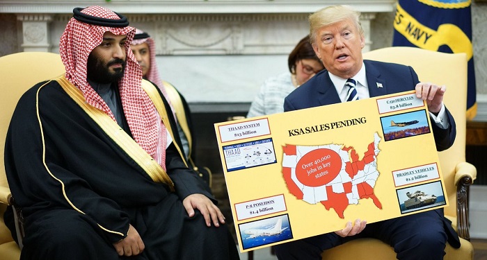 وصعد ترامب إهاناته لضيفه بن سلمان عندما قال مخاطباً إياه “زرت السعودية في شهر مايو الماضي وسوف نعيد المليارات من الدولارات إلى الولايات المتحدة ونحن نفهم ذلك والسعودية تفهم ذلك”.