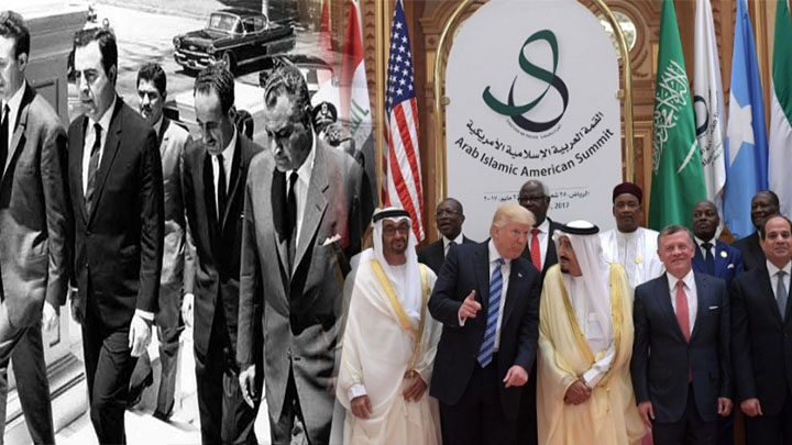 في 56م وقفت الدول العربية جميعها الى جانب مصر في مواجهه العدوان الثلاثي بينما تقف دول عربية اليوم الى جانب ” إسرائيل ” والدول المعتدية في عدوانها السافر على بلد عربي تصدرها السعودية الذي تقود تحالفا يضم دولا عربية وصهيونيا وغربيا على بلد عربي هو اليمن وترتكب فيه أبشع الجرائم منذ 2015م خدمة للأهداف الصهيونية الامريكية.