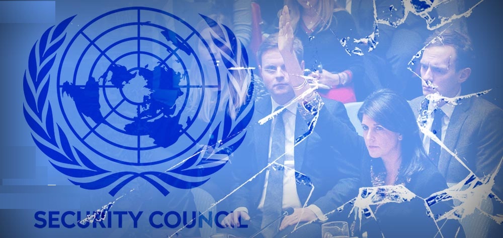 لم يتوصل مجلس الأمن في الأيام الماضية، والذي عقد من أجل بحث الهجوم الكيميائي المفبرك في سوريا، إلى أي نتيجة وذلك بفعل الفيتو الروسي على مشروع قرار قدّمته أمريكا من أجل شن هجوم على سوريا، وخلال هذه الجلسة صرّحت السفيرة الأمريكية في الأمم المتحدة نيكي هالي بأن بلادها، بغض النظر عن نتيجة اجتماع المجلس، مصممة على الرد على ما أسمته الانتهاك السوري للأعراف الدولية باستخدام الأسلحة الكيميائية ضد المدنيين، إعلان هيلي أثار موجة من التخوف بين أعضاء مجلس الأمن، حيث رآه البعض بداية خطيرة لتكرار سيناريو انهيار المجتمع الأممي خلال الحرب العالمية الثانية.