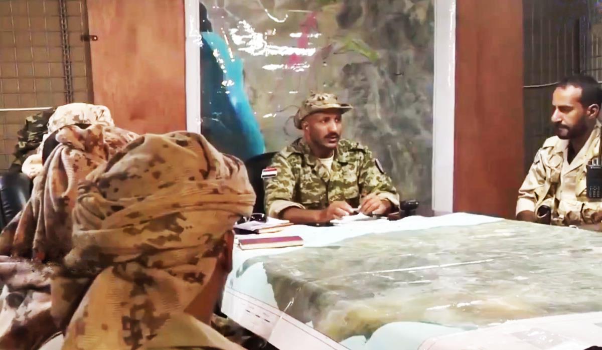 ويظهر المقطع المصور، طارق صالح ببزته العسكرية من داخل إحدى غرف العمليات العسكرية، ويقوم بالشرح لعدد من الضباط عن مجريات المعركة في الساحل الغربي.
