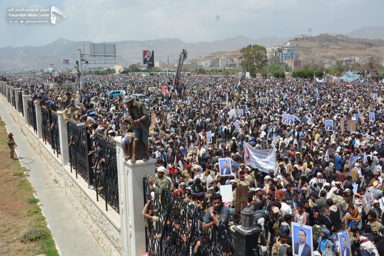 واكتظ ميدان السبعين “أكبر ميادين العاصمة” والشوارع المحيطة به بملايين اليمنيين الحاملين لصور الرئيس الشهيد الذين توافدوا من صنعاء ومن مختلف المحافظات اليمنية.