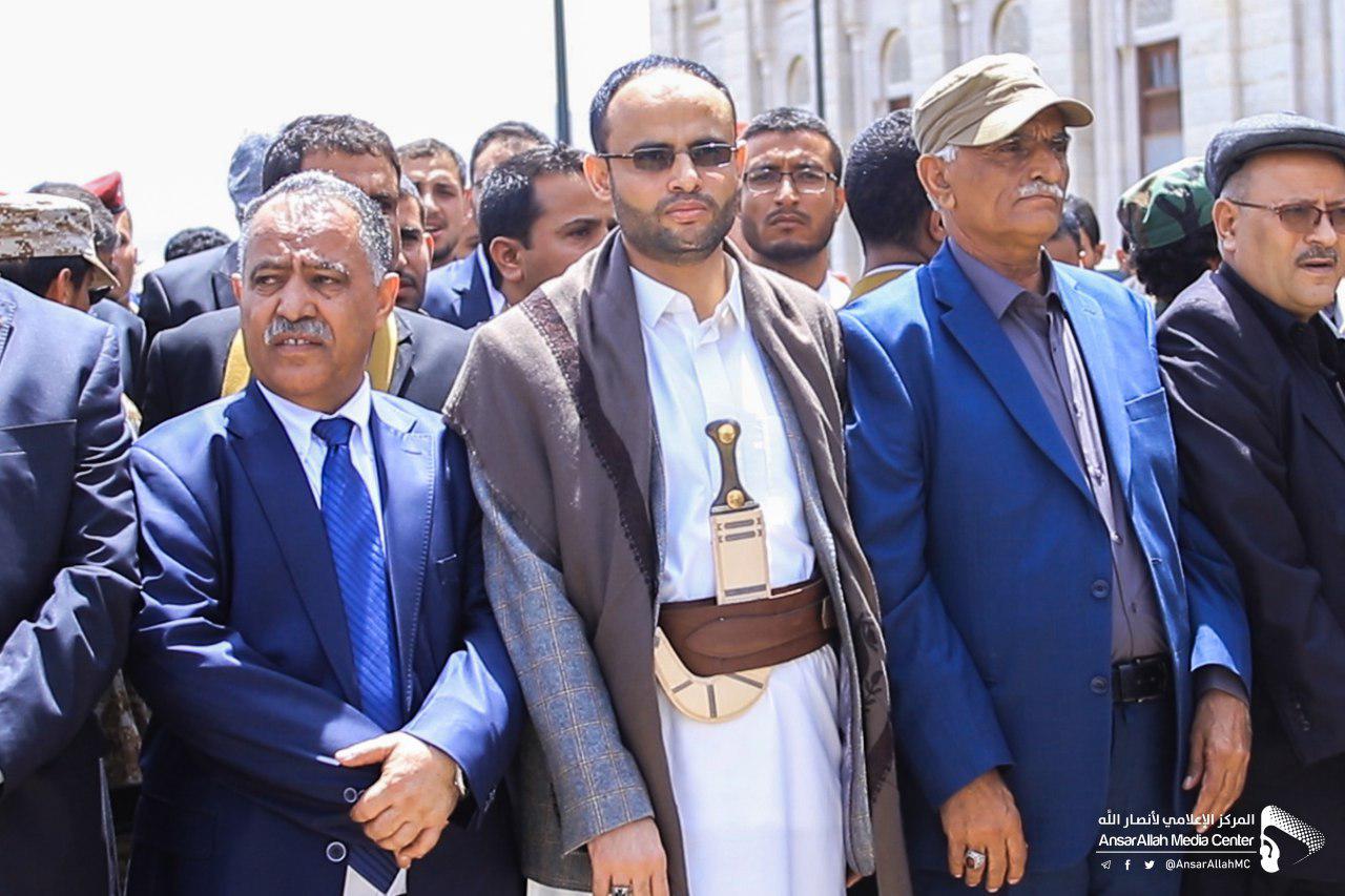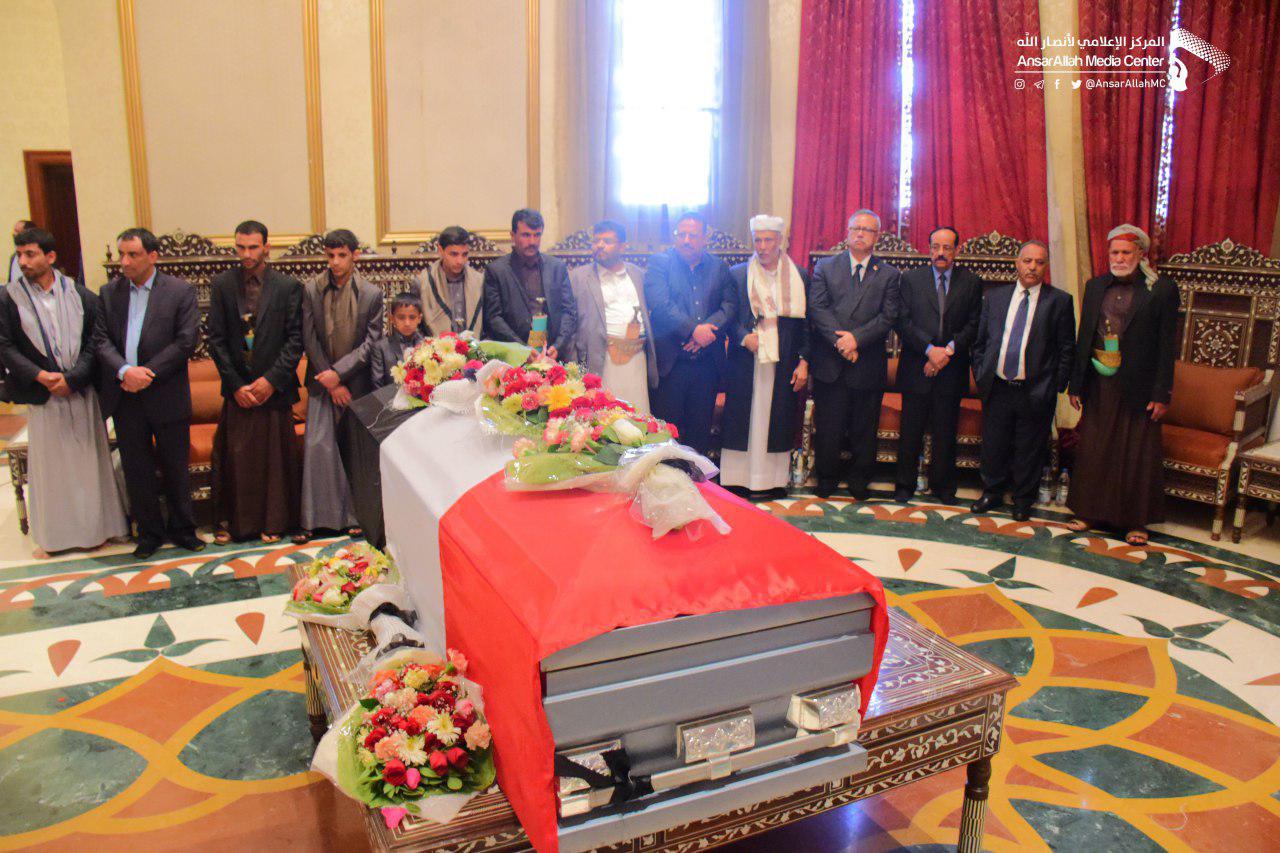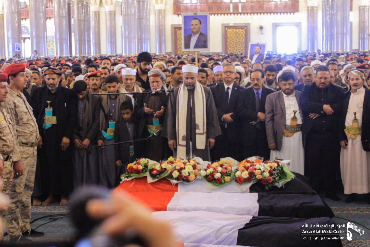 وتقدّمهم رئيس المجلس السياسي الأعلى مهدي المشاط ورئيس مجلس النواب ورئيس مجلس القضاء الأعلى ورئيس الوزراء وأعضاء المجلس السياسي الأعلى، وأعضاء مجلس النواب والوزراء والقادة العسكريون والشخصيات الاجتماعية.