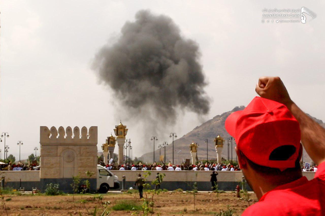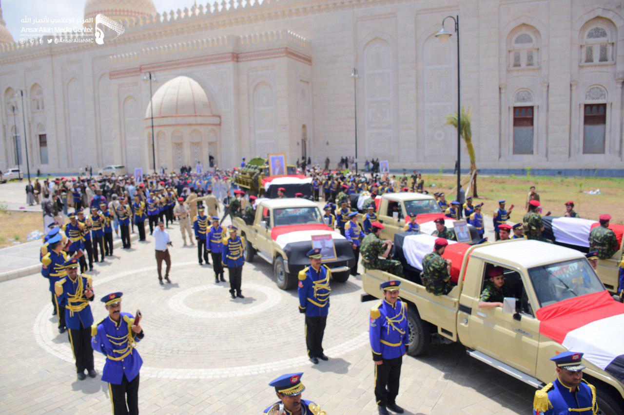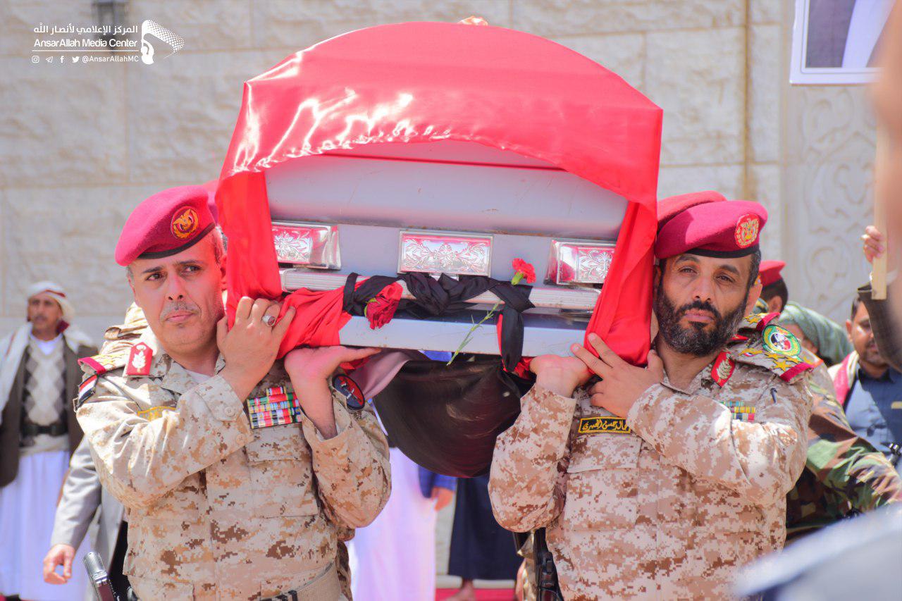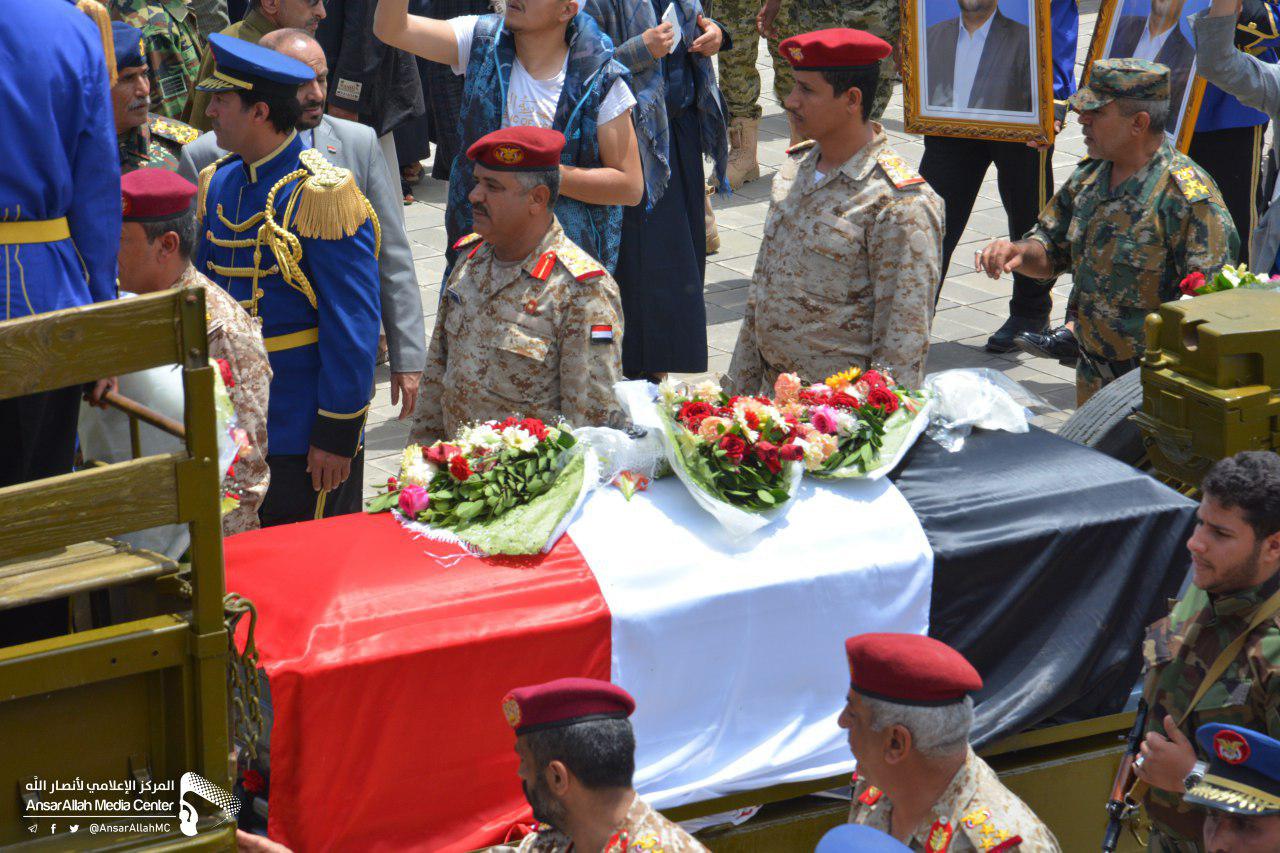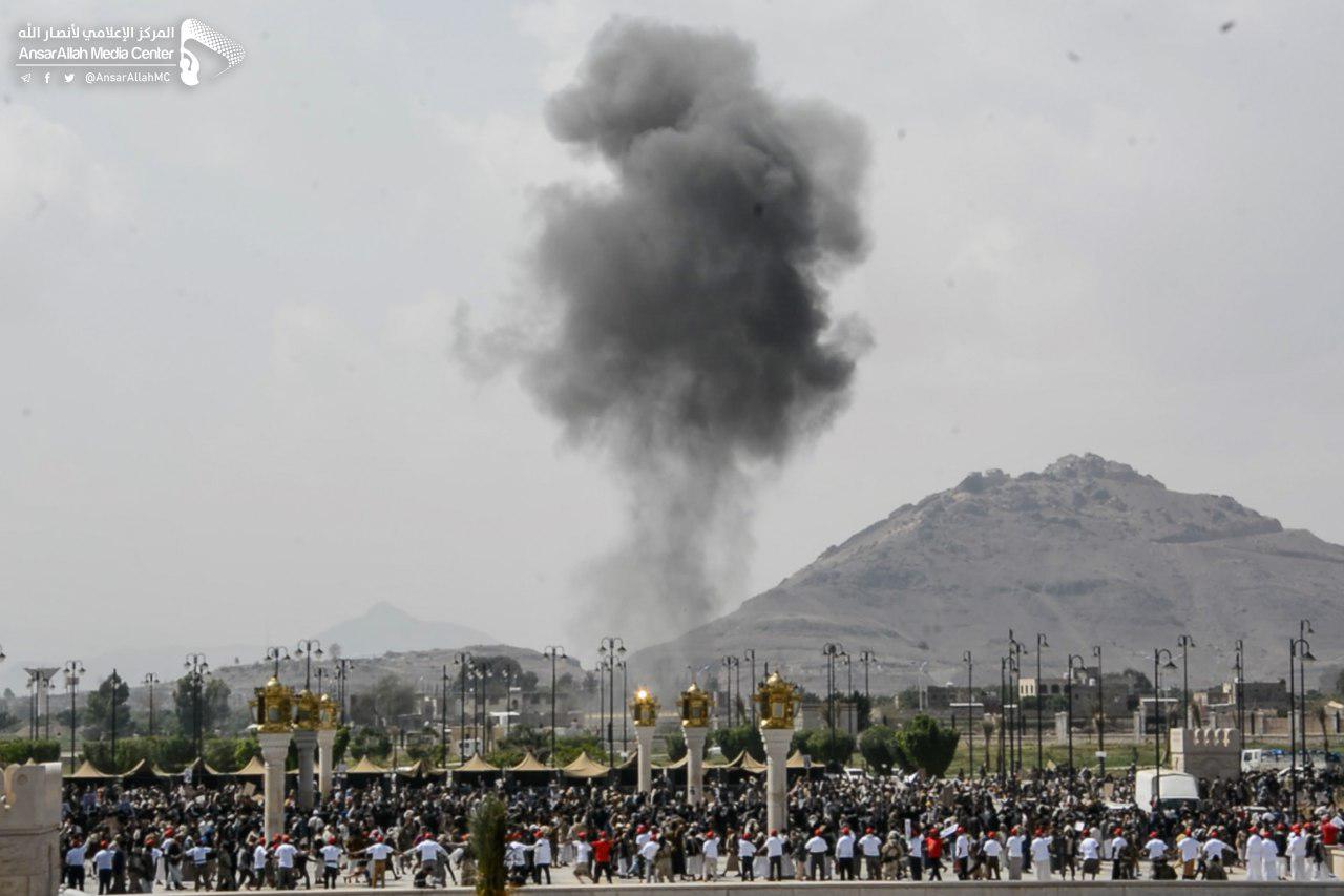 وخلال مراسم التشييع شنّ طيران العدوان غارتين على محيط ميدان السبعين بالقرب من المشيعين، فيما بقيت الحشود المشيعة في الميدان وهتفت بهتاف الحرية “الله أكبر- الموت لأمريكا- الموت لإسرائيل – اللعنة على اليهود – النصر للإسلام”.