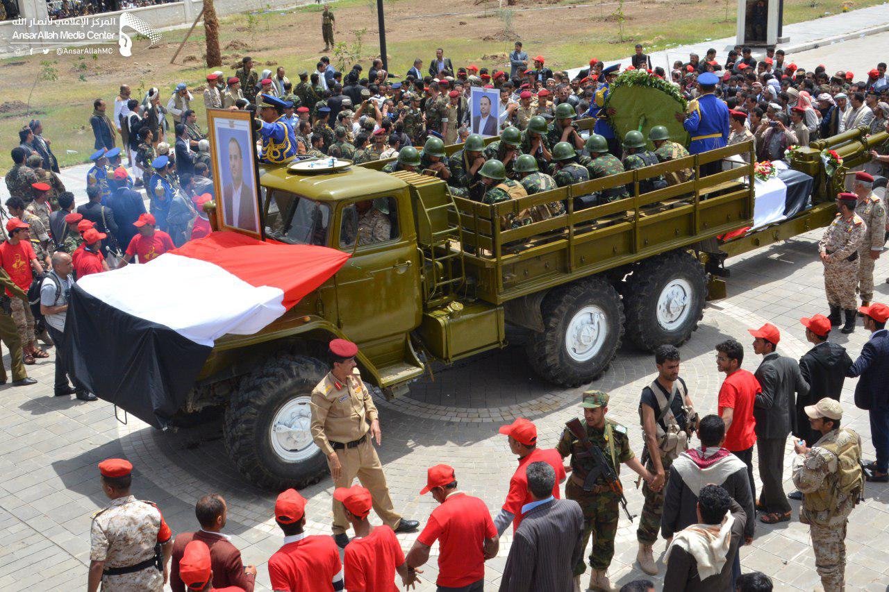 ودّع ملايين اليمنيين، صباح اليوم السبت، في موكب جنائزي تاريخي الرئيس الشهيد صالح الصمّاد الذي اغتالته غارات جوية لطيران العدوان الأمريكي السعودي بمحافظة الحديدة.
