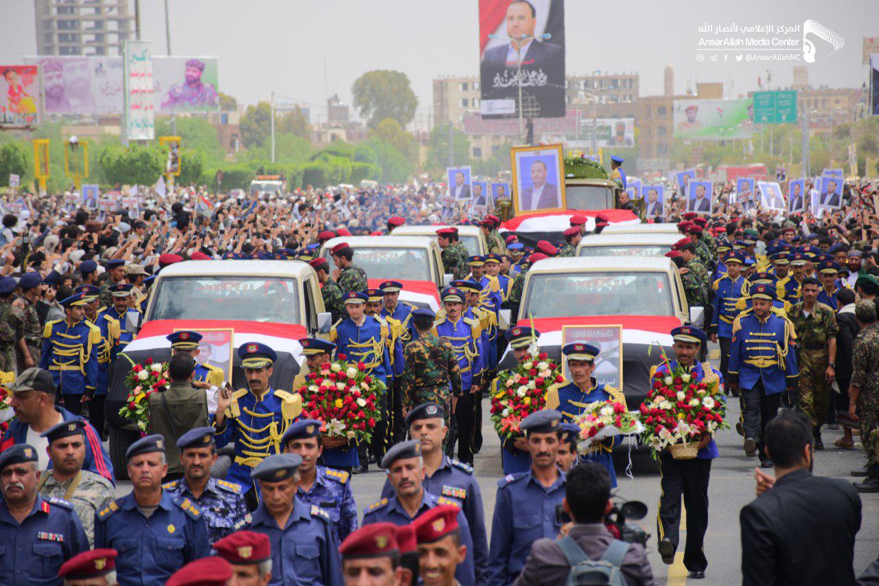 الشعب اليمني يودّع الرئيس الصماد ورفاقه بحضور مليوني في ميدان السبعين والعدوان يستهدف محيط المشيّعين + (صور)